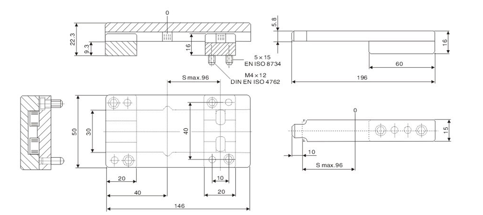 ※ 注意事項:在模具加工中,必須計算相同的行程對稱安裝,否則會導致單套鎖模扣受力不平衡, 導致組件斷裂 。