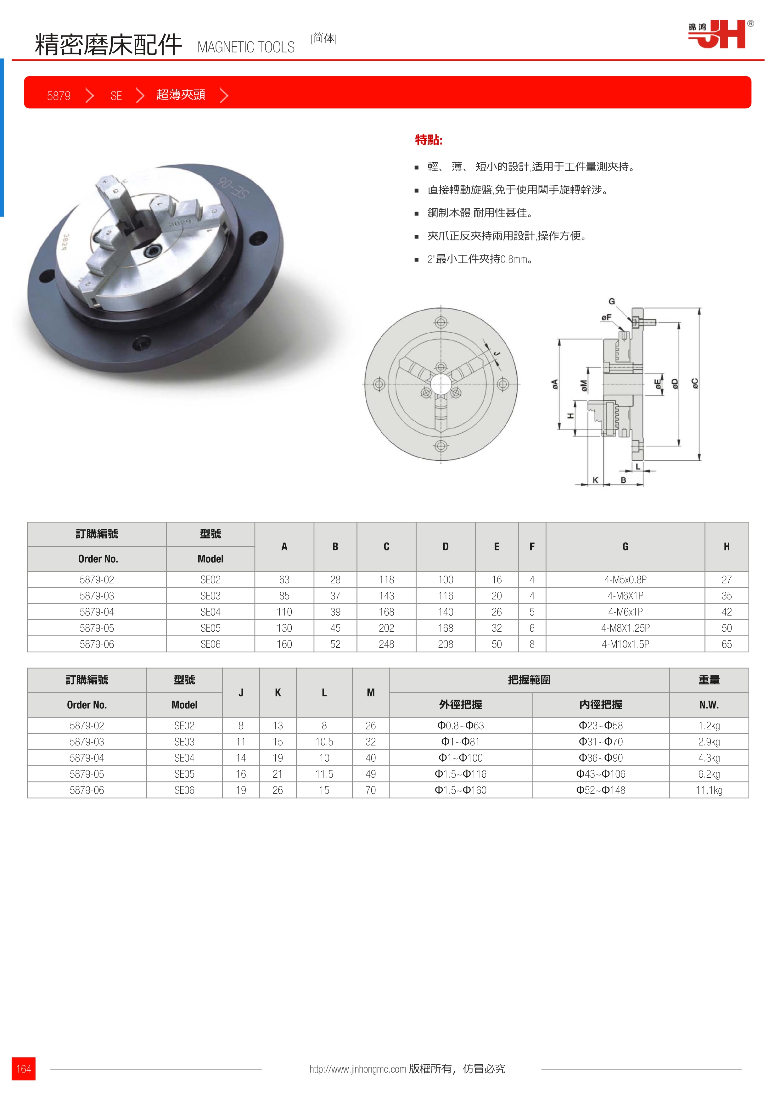 | 5879-06 | SE06 | 19 | 26 | 15 | 70 | Φ1.5~Φ160 | Φ52~Φ148 | 11.1kg |