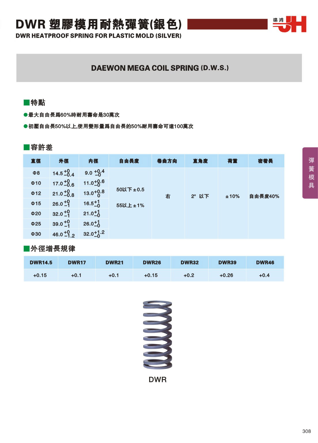 訂購:308-DWR塑膠模用耐熱彈簧(銀色)