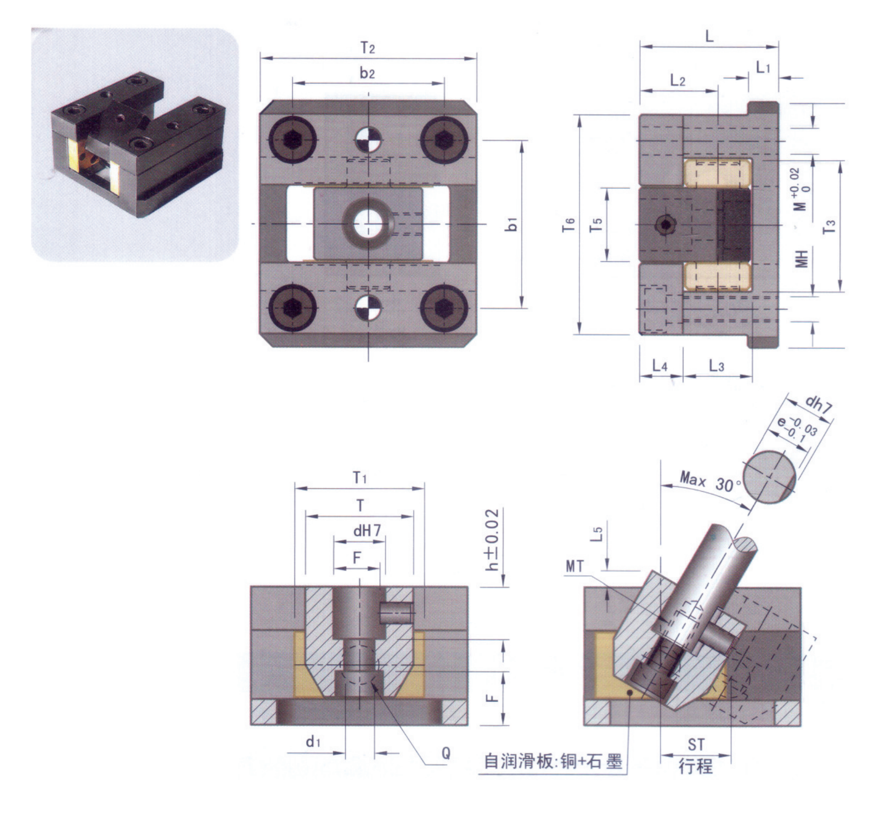 | Code | Φd | h | ΦQ | Φd1 | b1 | b2 | e | F | 行程 | MT | MH |