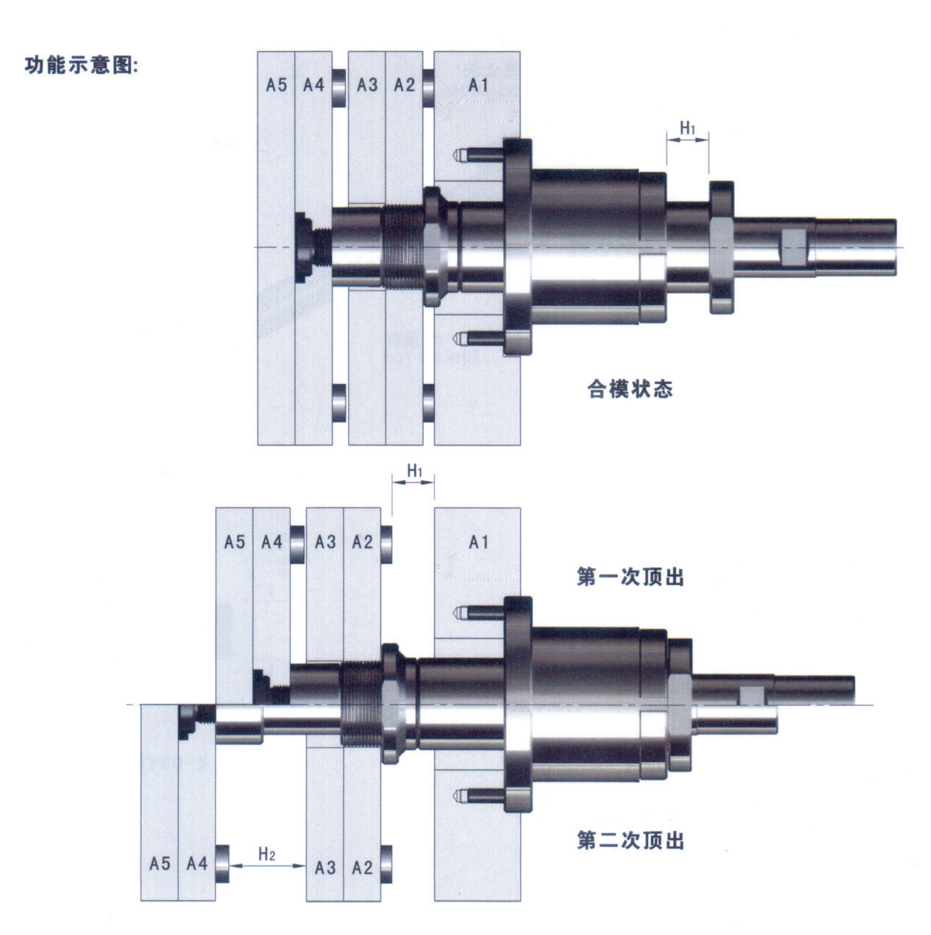• 需精準安裝(一套模具上一般安裝一個頂出裝置);行程要計算準確,否則產品容易損壞;