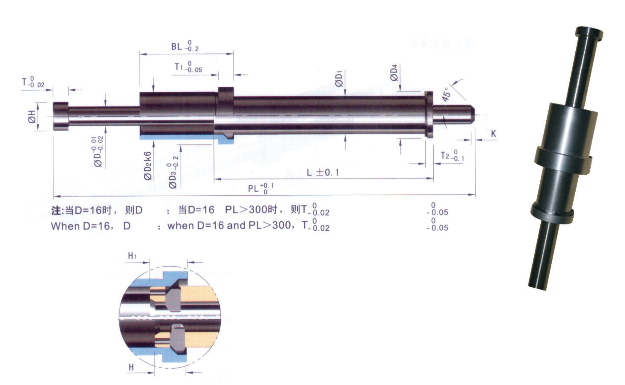 • 確保復位推桿準確裝入復位推管的前端部分,請注意如錯位將導致模具損壞;