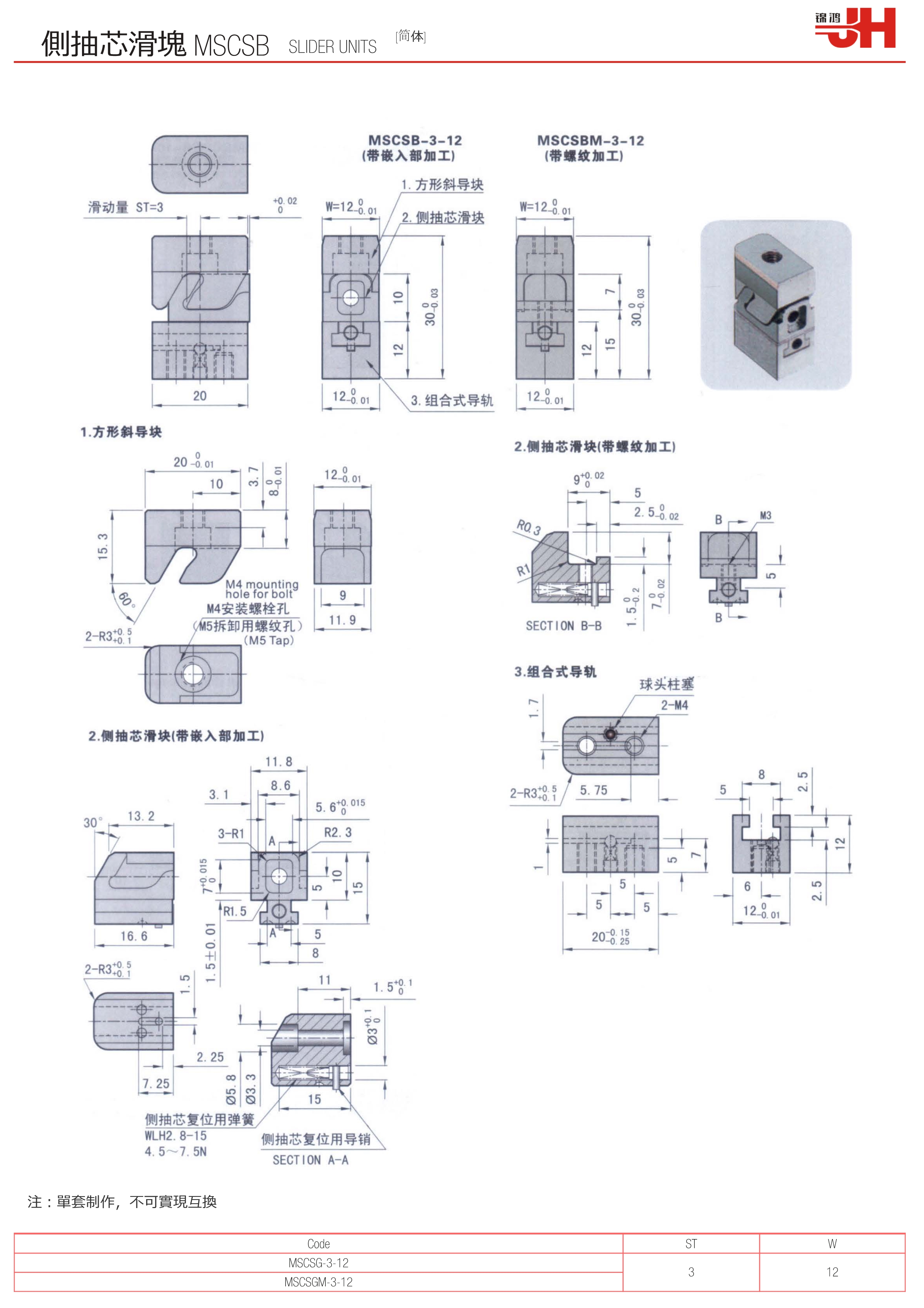 訂購:側(cè)抽芯滑塊 MSCSB-1