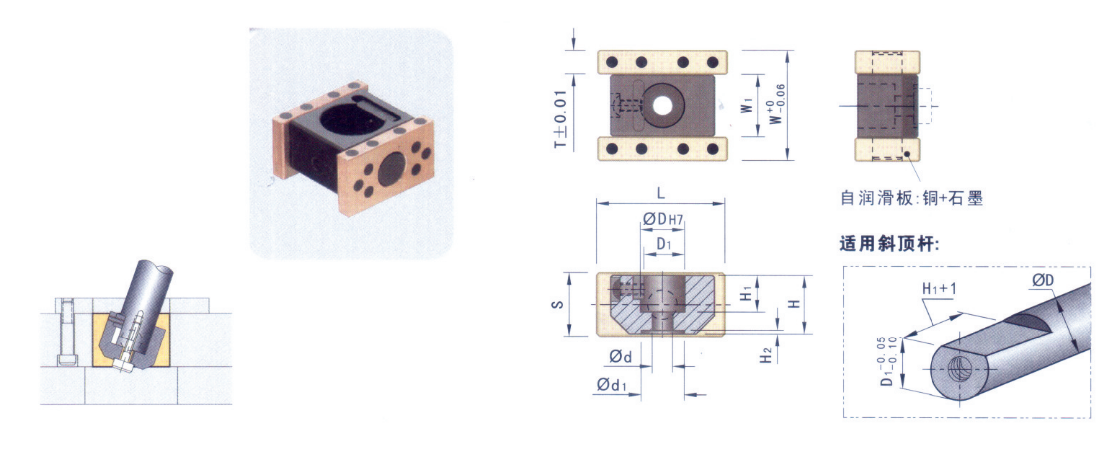 | Code | D | D1 | d | d1 | H | H1 | H2 | W | W1 | S | L | T |