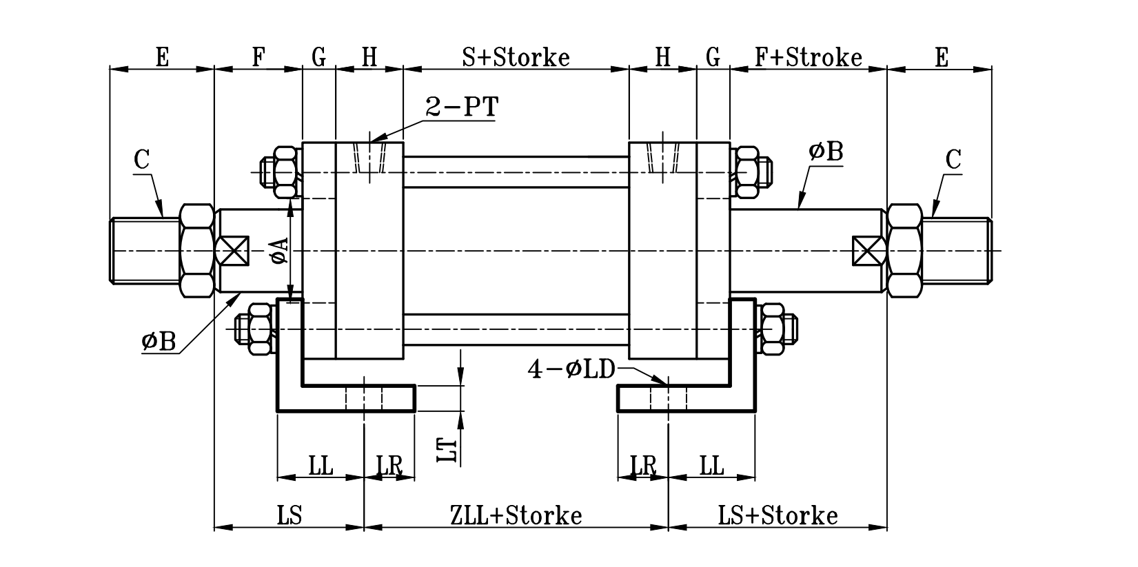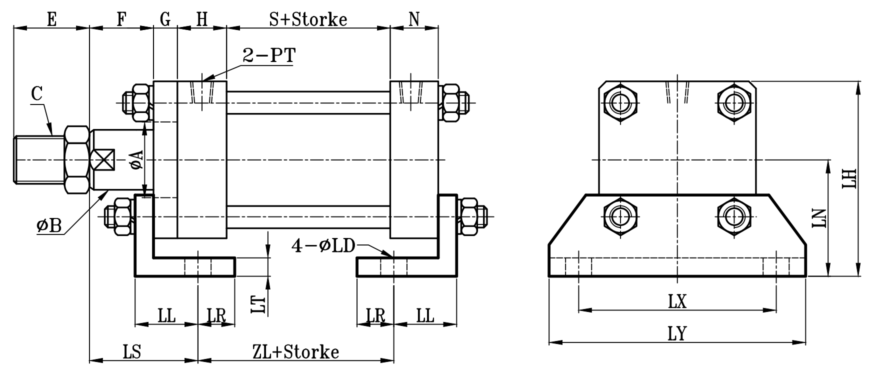 方型重型油壓缸LAA架尺寸圖 14Mpa Hydraulic Cylinders LAA Dimensional Features