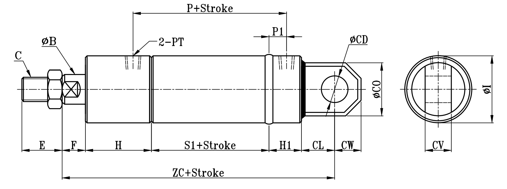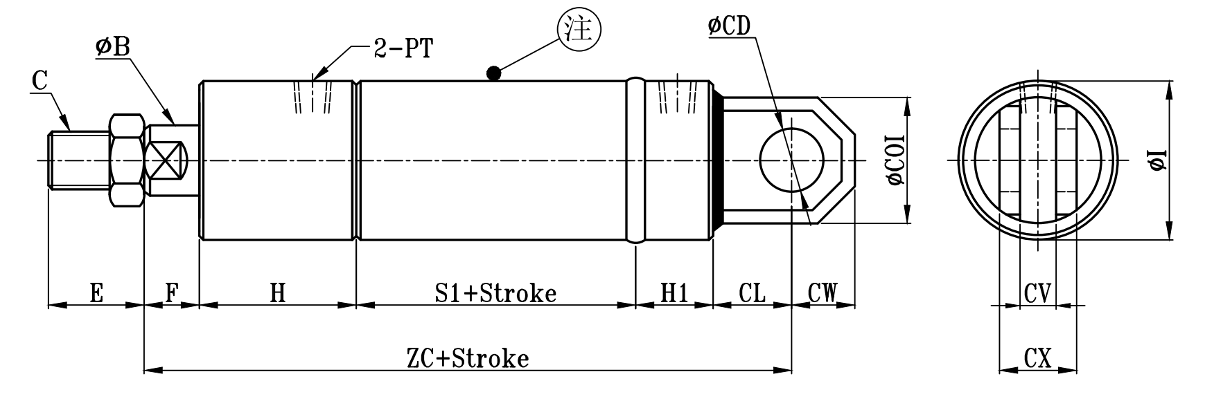 圓型中型油壓缸CA、CB板尺寸圖 14Mpa R0 Series CA,CB Dimensional Features