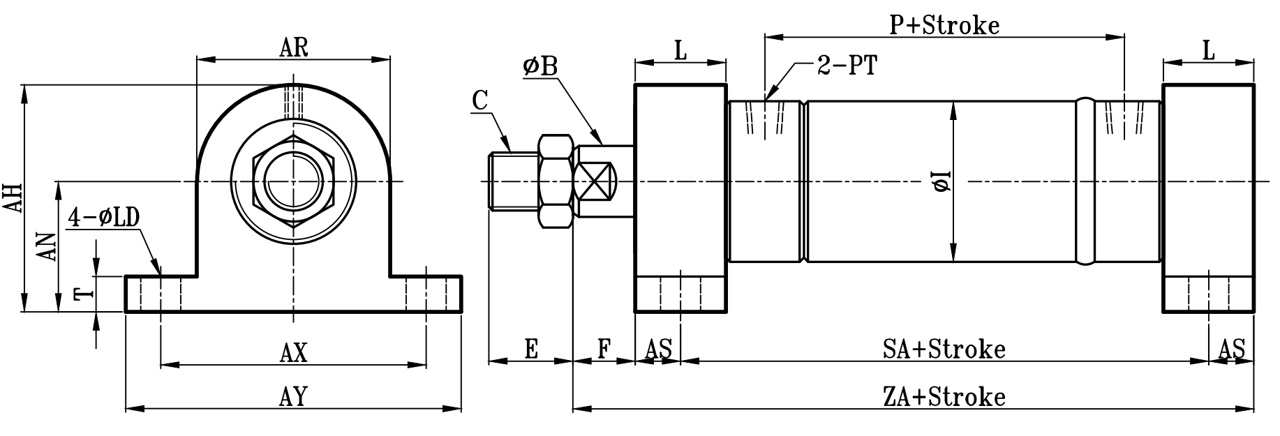 圓型中型油壓缸LA座板尺寸圖 14Mpa R0 Series LA Dimensional Features