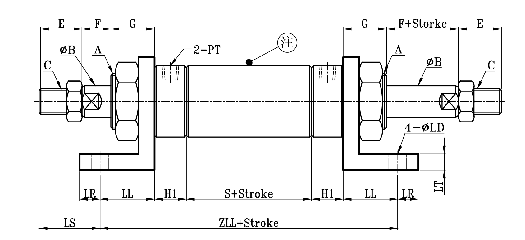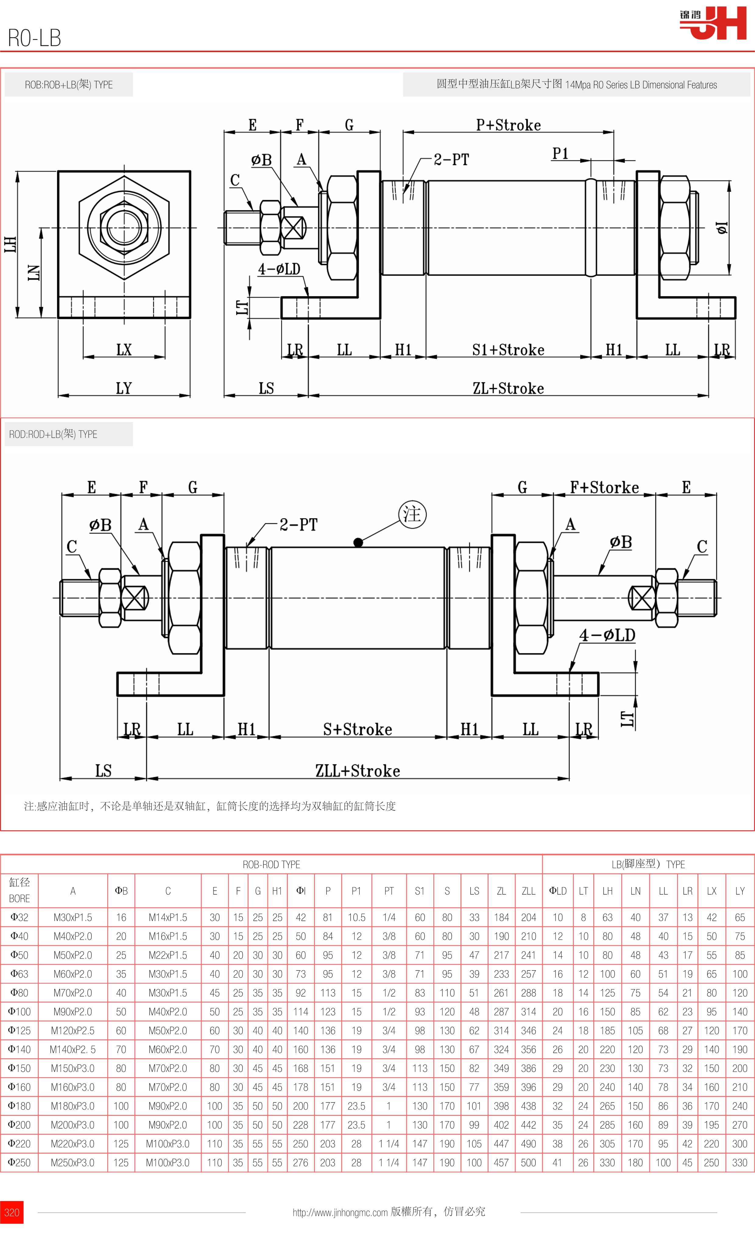 圓型中型油壓缸LB架尺寸圖 14Mpa R0 Series LB Dimensional Features