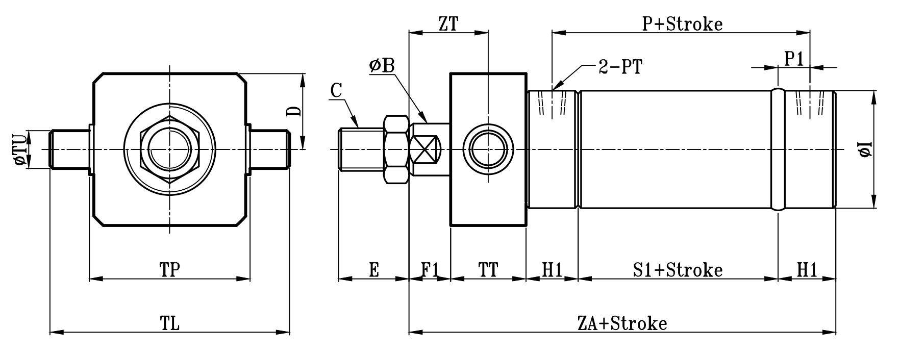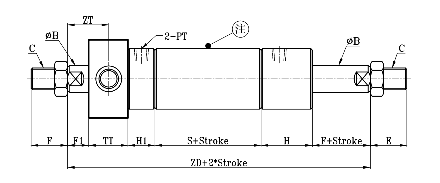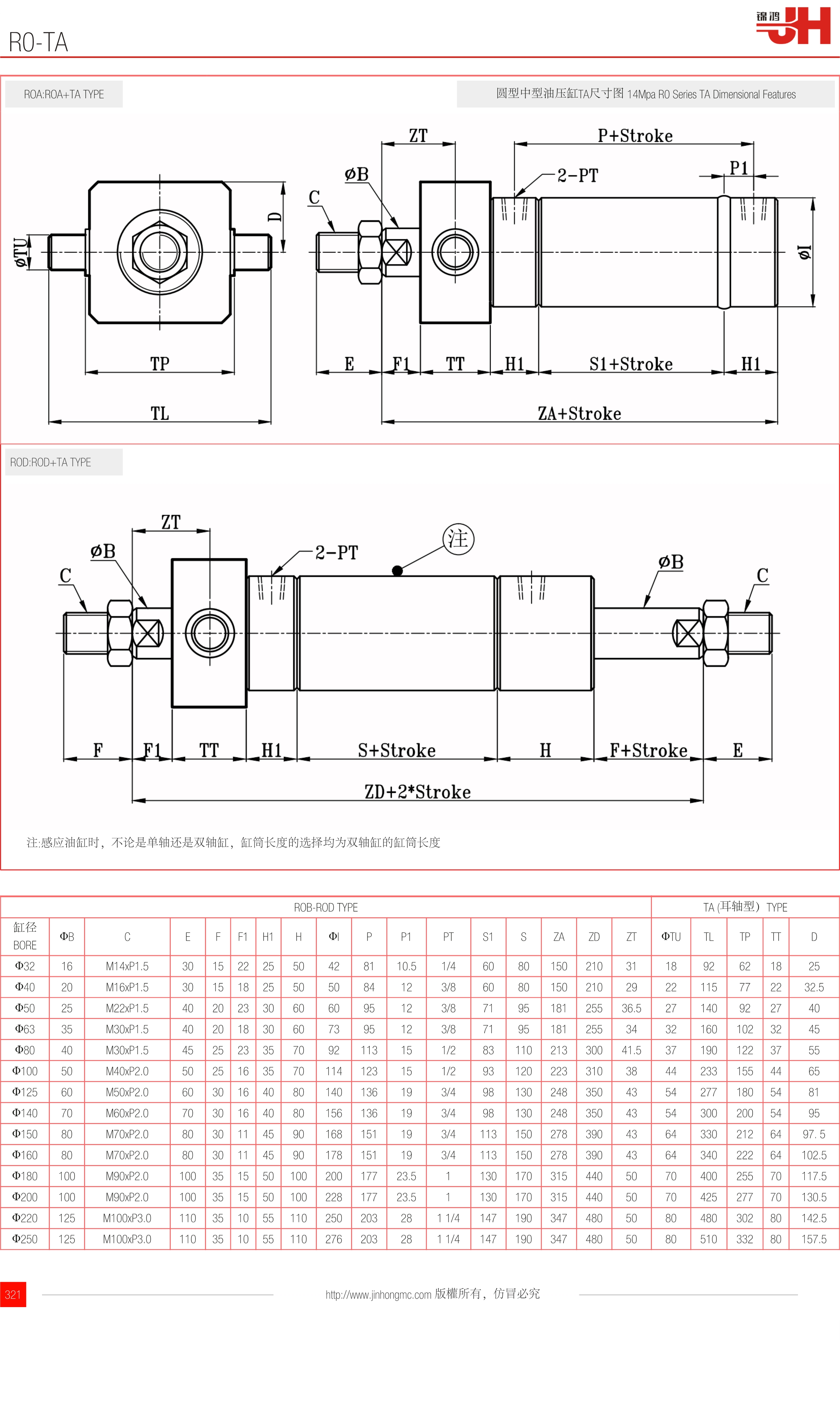圓型中型油壓缸TA尺寸圖 14Mpa R0 Series TA Dimensional Features