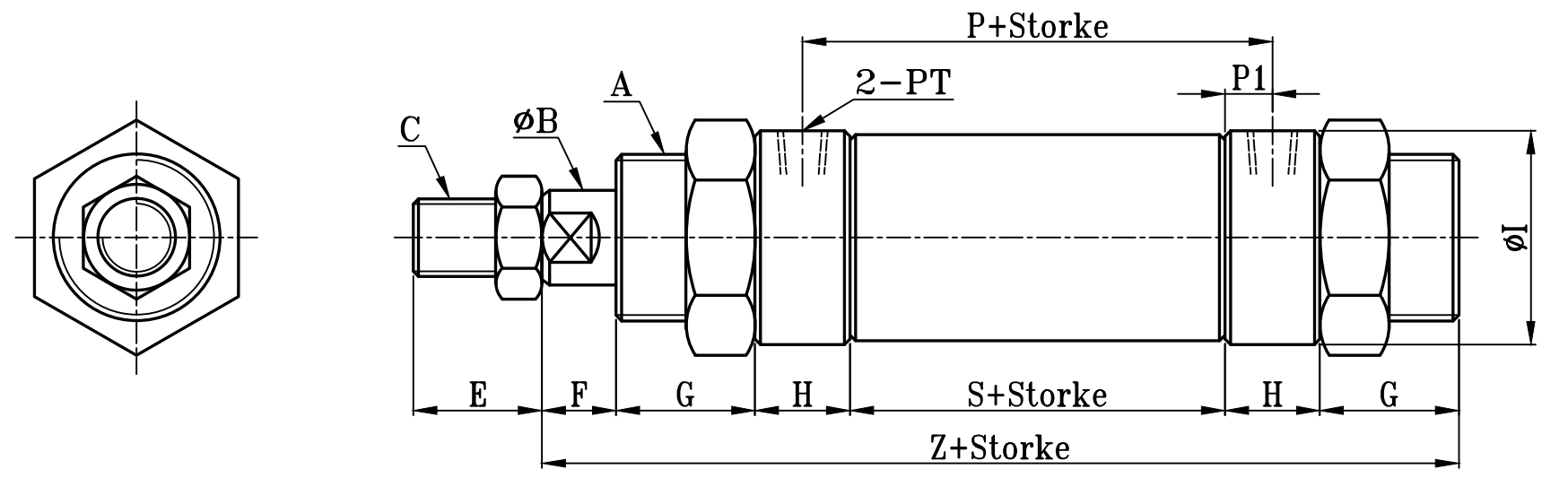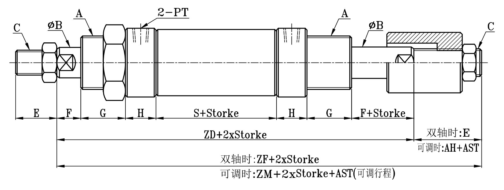 小型圓型低壓油壓缸尺寸圖 7Mpa S0 series Dimensional Features