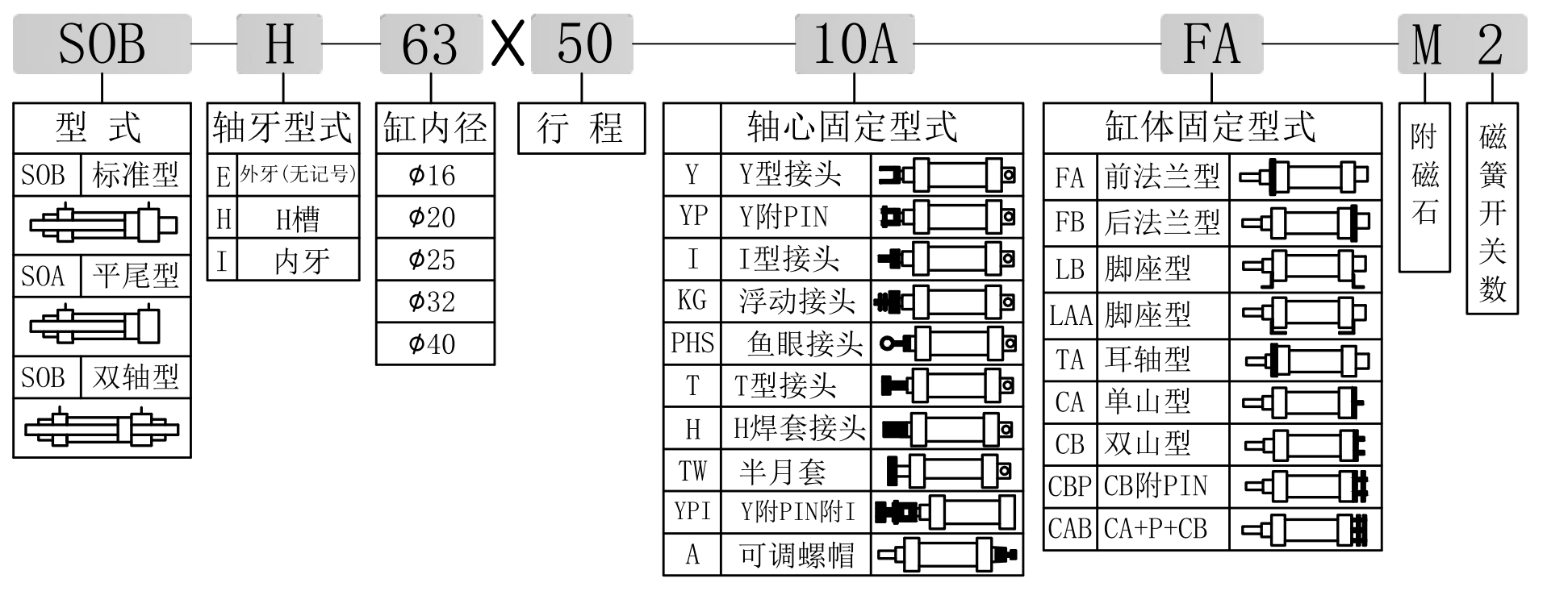 | 油壓缸內徑 Bore sizes of cy linder(mm) | Φ16、Φ20、Φ25、Φ32、Φ40 |