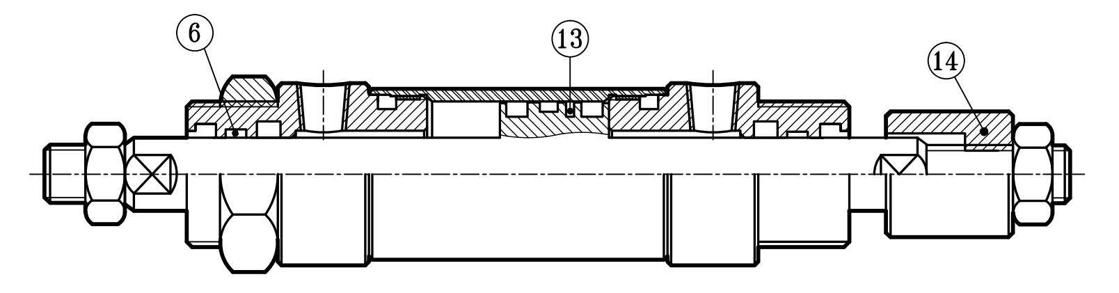 | 1 | 活塞桿 Piston rod | 1 | 6 | 導向環 Wearing ring | 1 | 11 | 油缸本體 Cylinder tude | 1 |