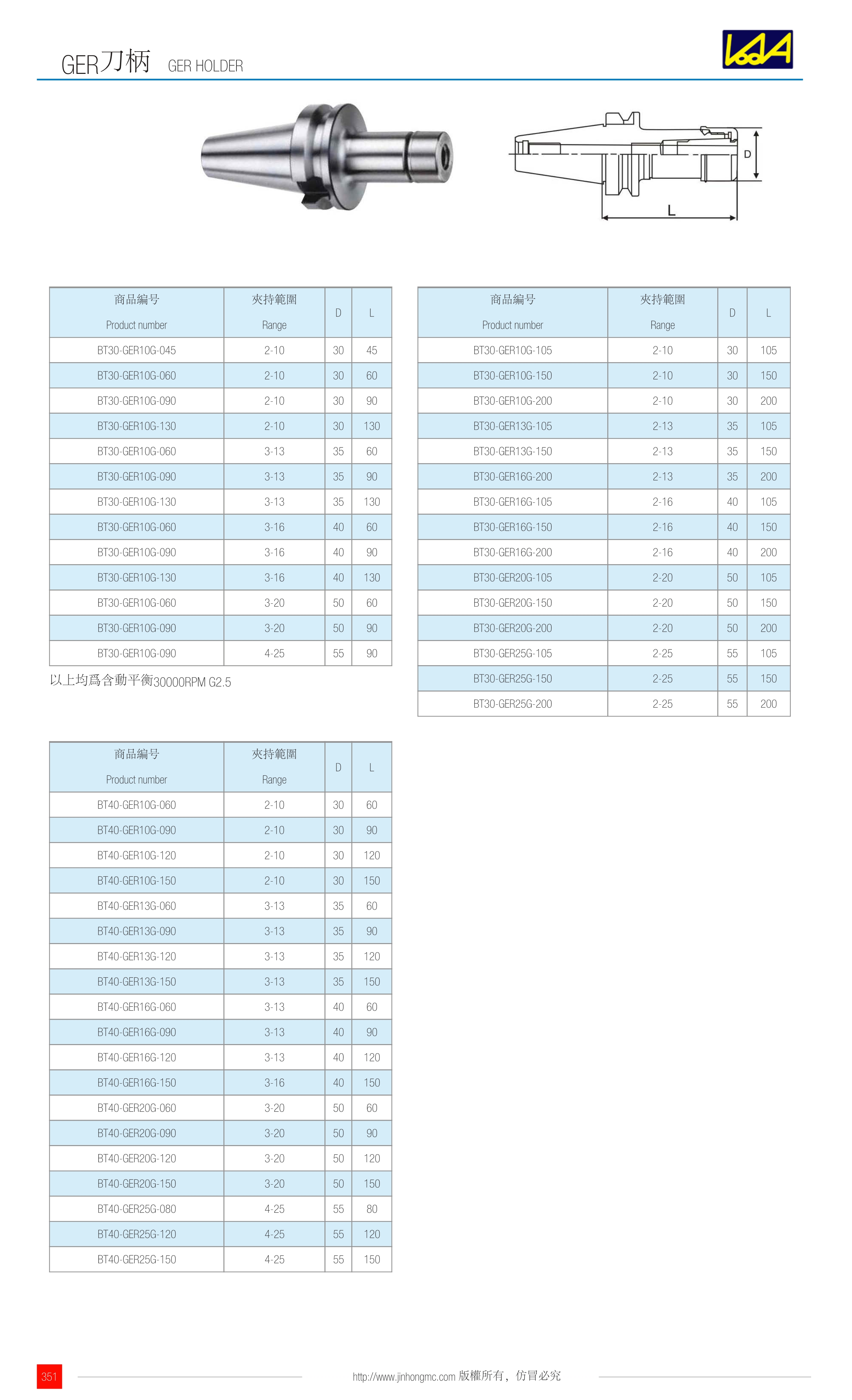 | BT30-GER25G-105 | 2-25 | 55 | 105 |